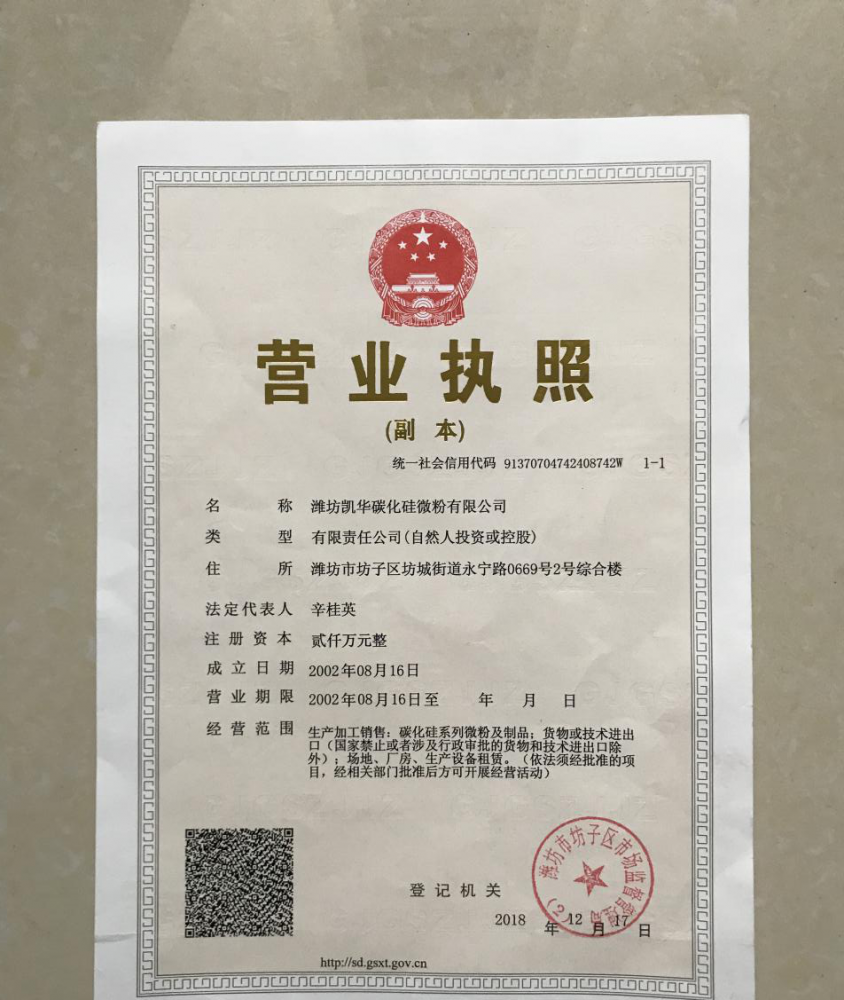濰坊凱華碳化硅微粉有限公司成立于2002年,國家高新技術(shù)企業(yè),公司占地40畝,標(biāo)準(zhǔn)廠房19000平方,辦公樓、研發(fā)處2000平方,年生產(chǎn)能力3萬噸。一直從事陶瓷級微粉的生產(chǎn)銷售,所生產(chǎn)的超細(xì)碳化硅微粉具有純度高、粒形好、穩(wěn)定性強(qiáng)等特點,主要用于反應(yīng)燒結(jié)、無壓燒結(jié)、硅碳棒新工藝、重結(jié)晶燒結(jié)、蜂窩陶瓷、機(jī)車制動裝置、研磨拋光、金屬防腐表面噴涂、納米隔熱保溫材料等領(lǐng)域。標(biāo)準(zhǔn)產(chǎn)品有:F240、F1200、W40、W28、W20、W14、W10、W7、W5、W3.5、 W2.5、W2、W1.5、W0.5、5S、D3E、100F、RS07、RS100及整形高密度系列綠碳化硅微粉......